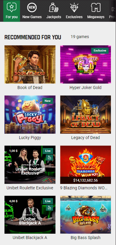 The Unibet Casino team curates diverse games lists under varied categories, enhancing player choice.